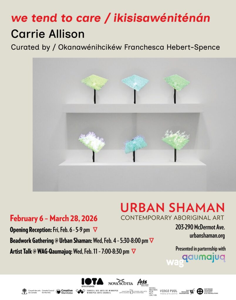 Carrie Allison responds to her maternal Nêhiýaw/Cree and Métis ancestry, thinking through intergenerational cultural loss and acts of reclaiming, resilience, resistance, and activism, while also thinking through notions of allyship, kinship and visiting. Her work seeks to reclaim, remember, recreate and celebrate her ancestry through visual discussions often utilizing beading, embroidery, handmade paper, watercolour,... Read More
